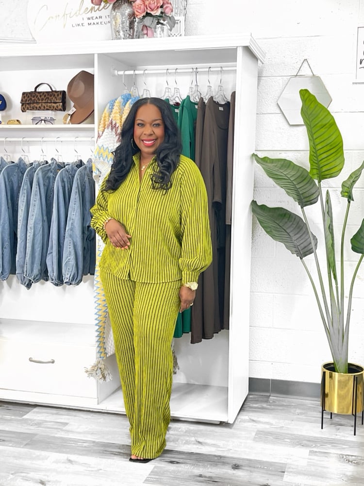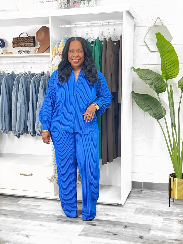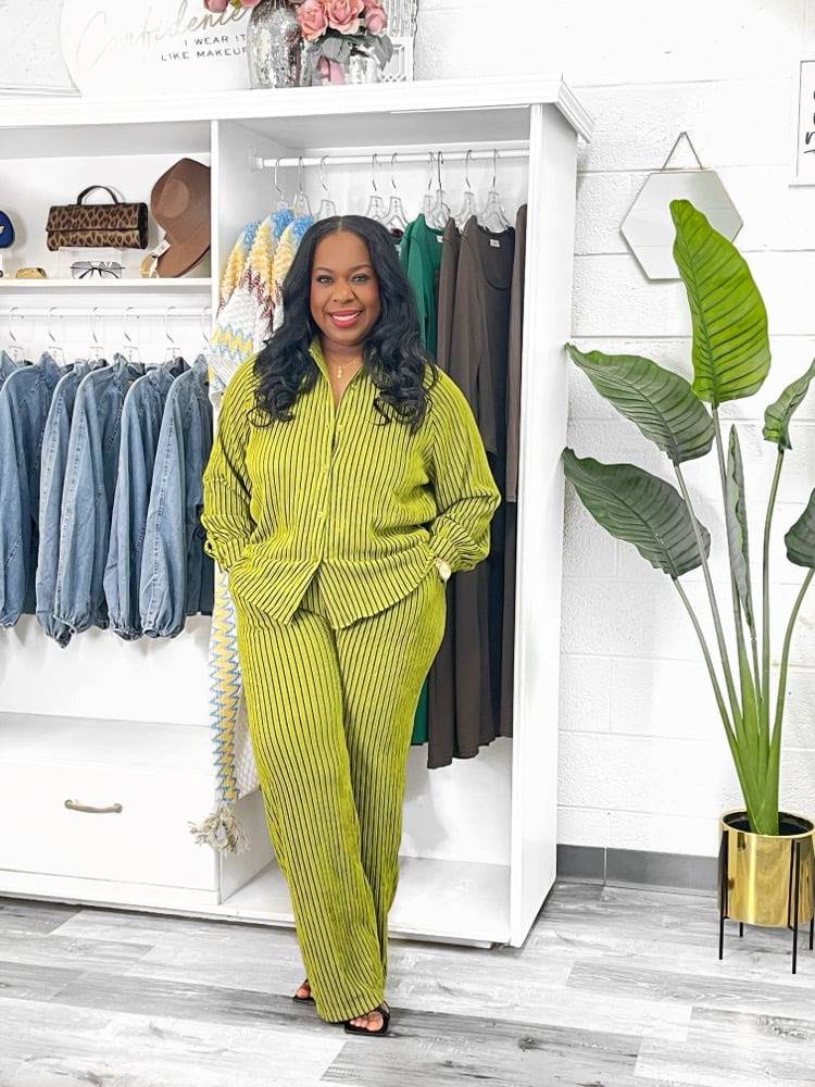Elevate your style with the Analise 2 Piece Pant Set! Featuring a striped button-up top and wide leg pants with an elastic waistband and functional drawstring, this set offers comfort and flair. Mix and match each piece for endless outfit possibilities! It’s perfect for those who love playful, effortless chic!