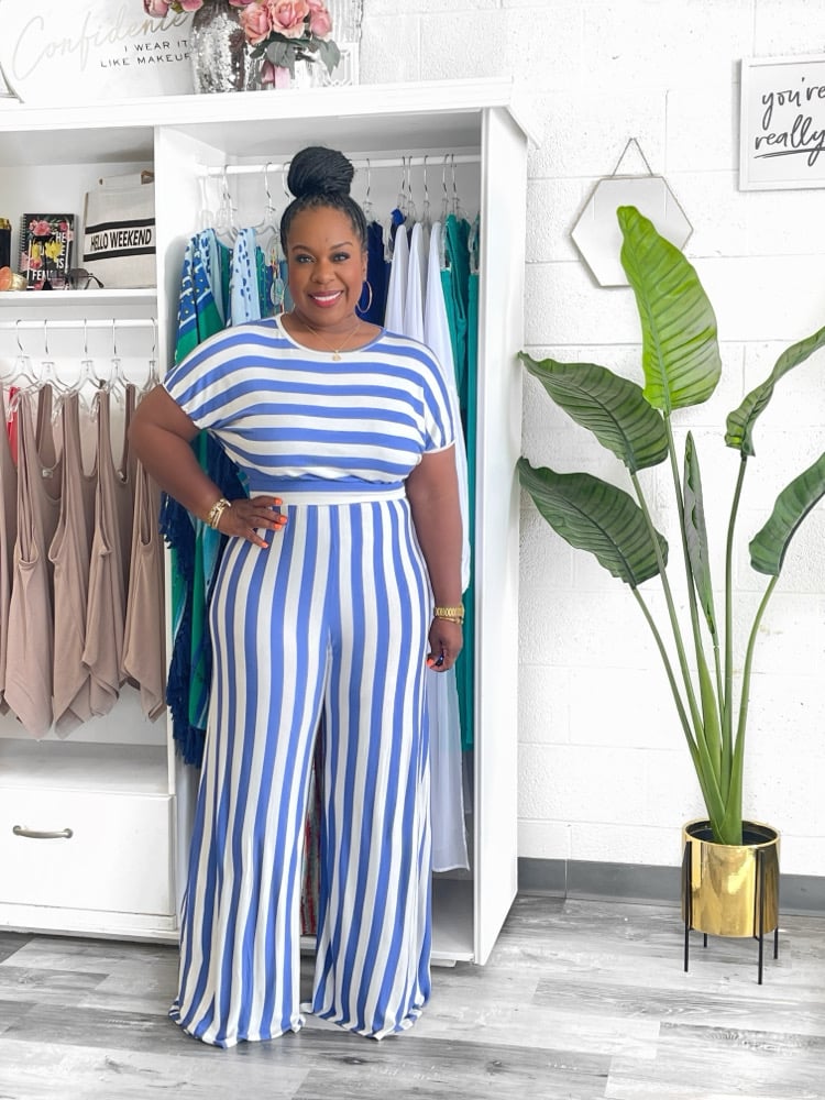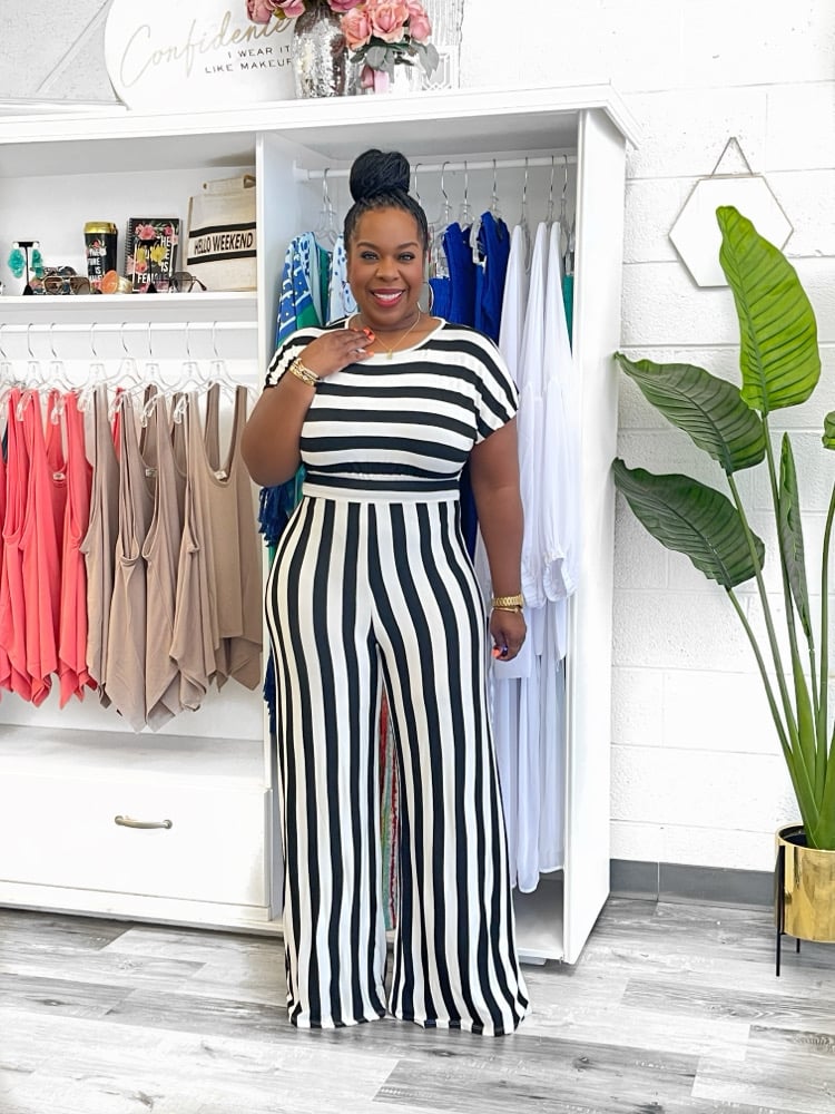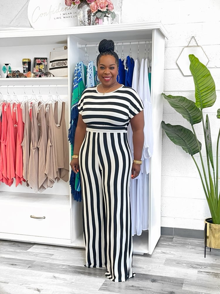 Meet Asia! She’s bold, she’s breezy, and she’s got stripes for days! With a mix of wide vertical and horizontal stripes, the Asia Jumpsuit brings a fun twist to classic cool. Think effortless vibes with major style points.