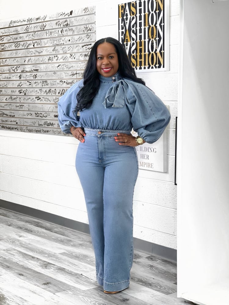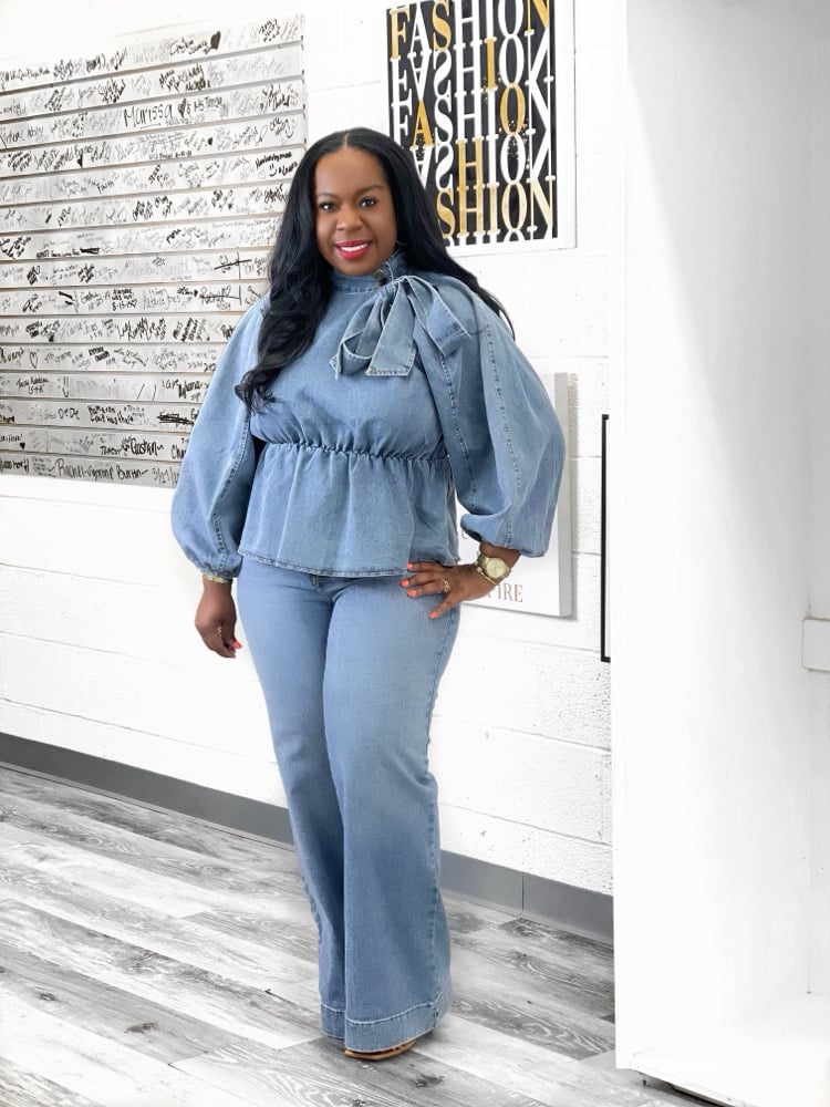 The denim blouse that ties short-sleeve style with mock-neck perfection. The elastic waist ensures you get the right fit, and two buttons give a classic touch. Puffy sleeves add some flair, while the versatile design means you can rock it in any situation. Go ahead – make a statement. Let Blair be the one!