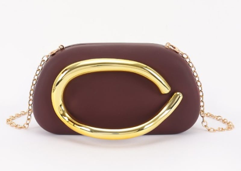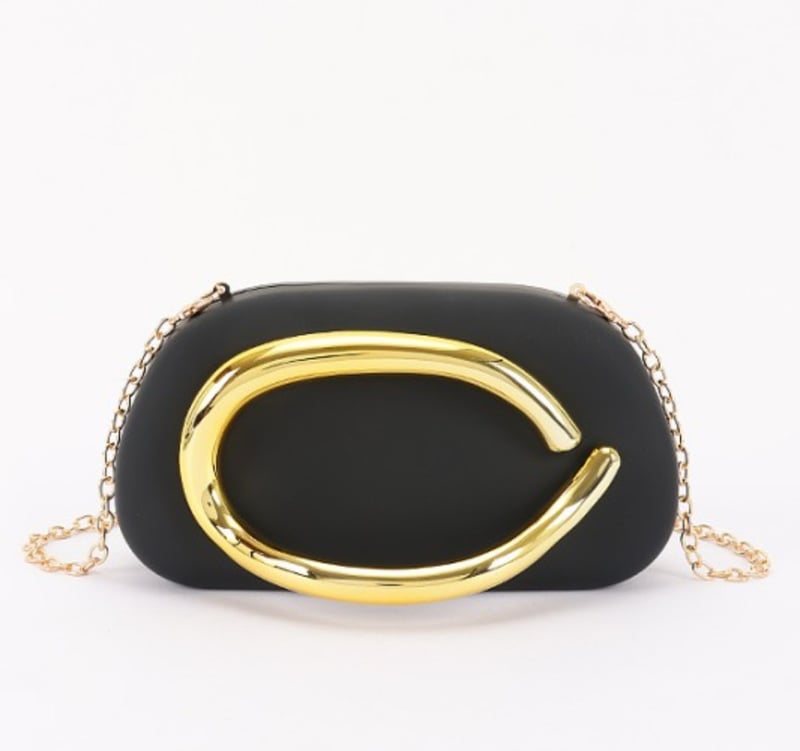 Turn heads with the Chanel vintage-style clutch, wrapped in smooth satin for a luxe feel. Its bold curved metal handle adds a touch of drama, while the detachable gold-tone chain lets you switch from clutch to crossbody with ease. Playful, chic, and ready to party!