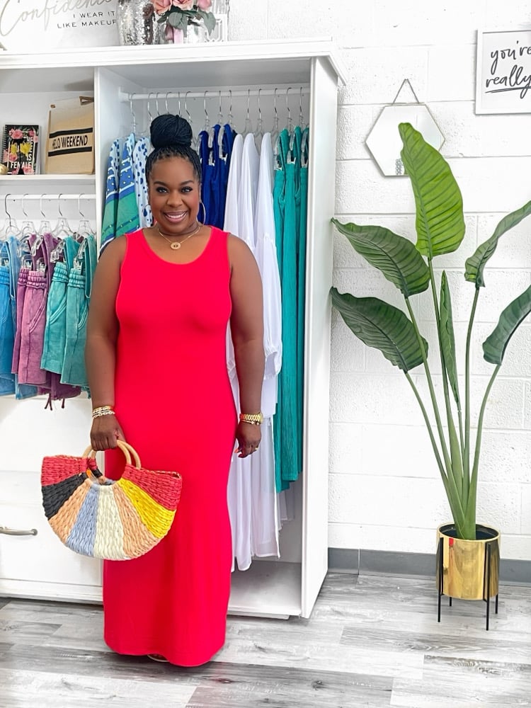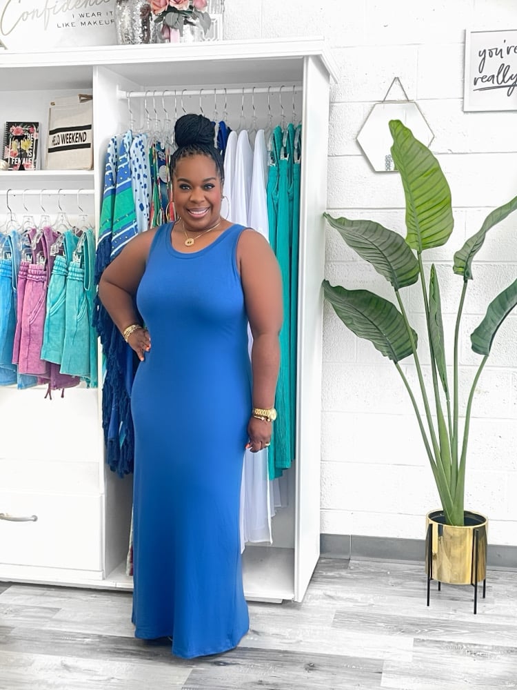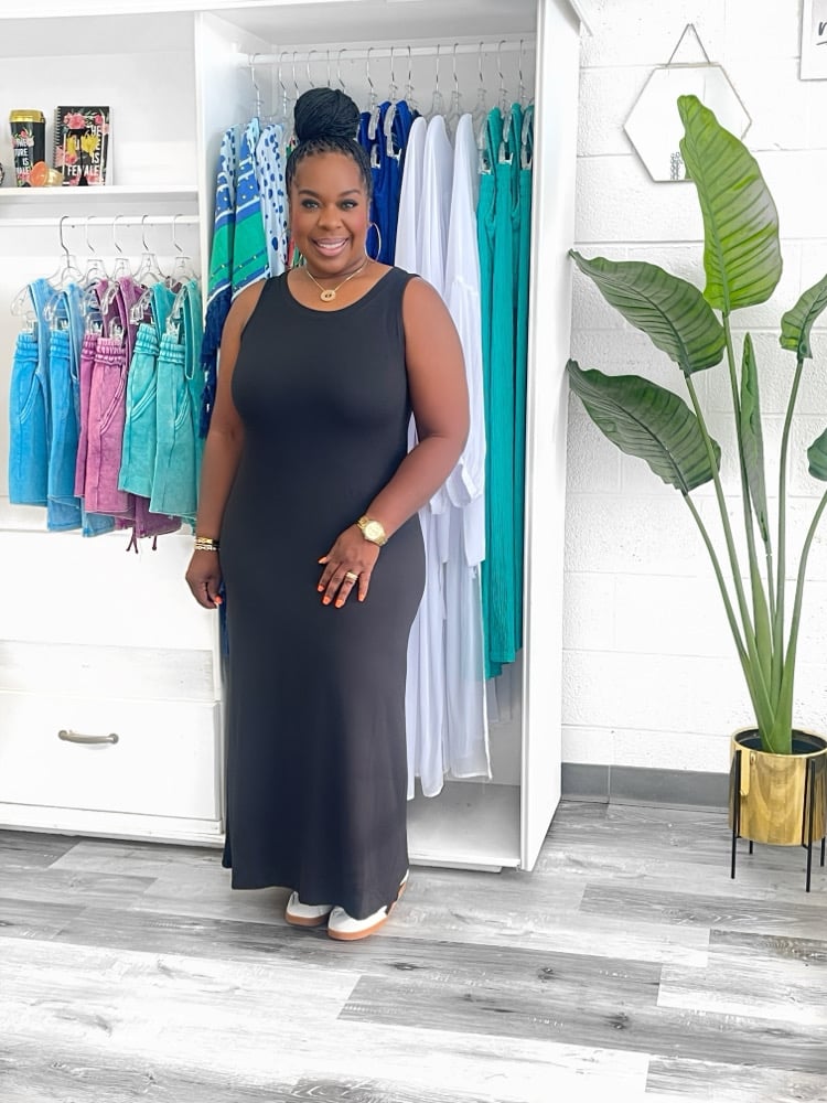 Step into effortless charm with the Emliee sleeveless maxi dress. Its flared silhouette and scoop neckline create a playful, breezy look perfect for sunny days or casual nights out. Lightweight and flowing, this dress moves with you.