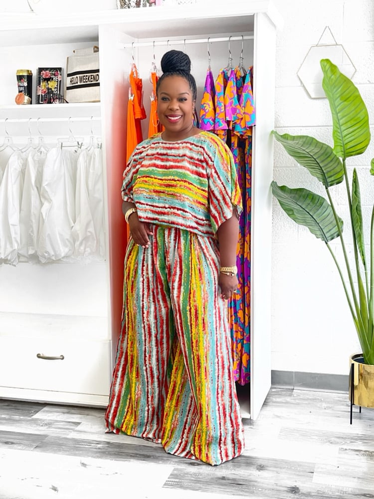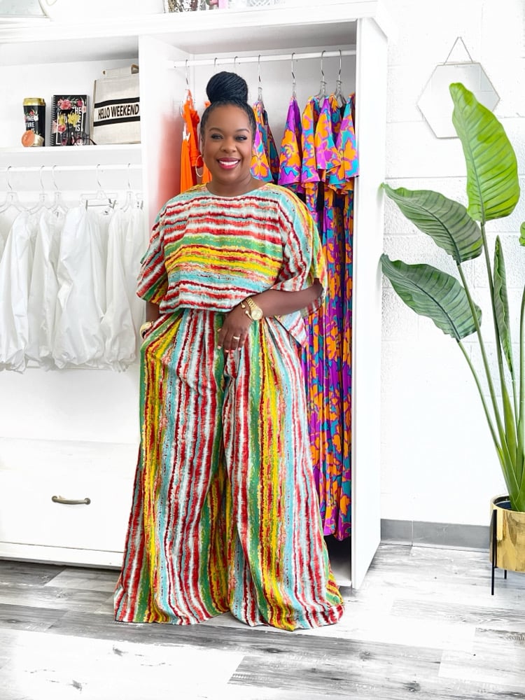 Step out in style with the Josie pants set! Featuring wide-leg woven stripe pants with a comfy back elastic waistband, side pockets for a bit of style. Make Josie your new go to for playful, easygoing vibes.
