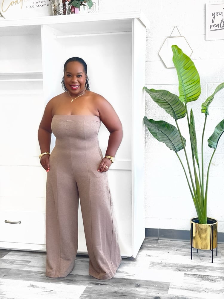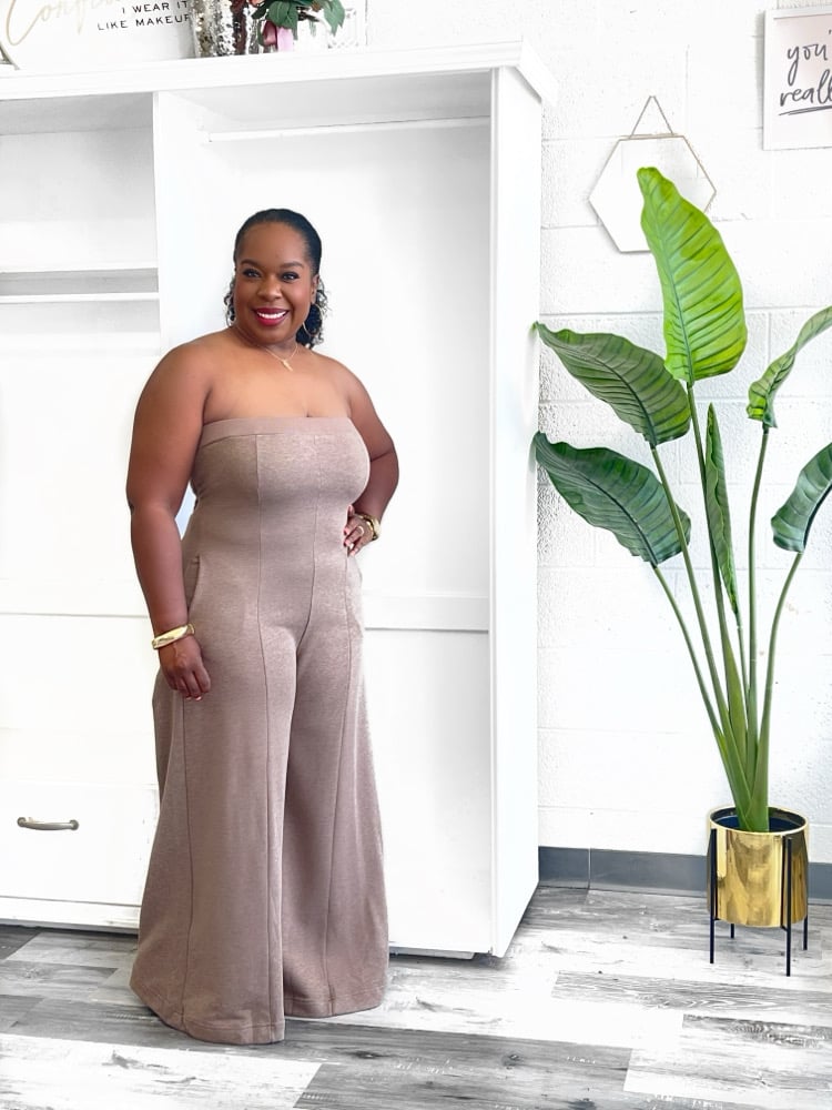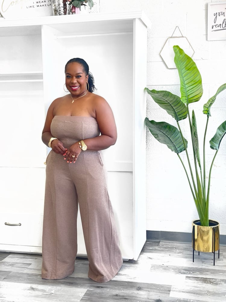 Effortless elegance meets all-day comfort in this wide-leg knit jumpsuit. Featuring a sleek square neckline, adjustable straps, side pockets, it is perfect for layering or wearing solo. Jump into Kamille now, transition into the Fall with your favorite denim jacket, blazer, or cardigan!